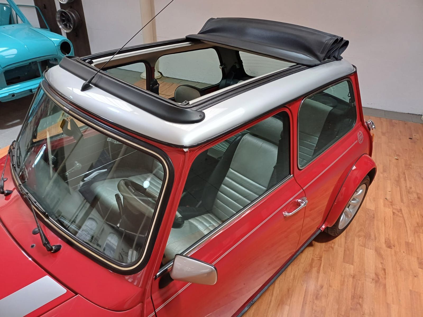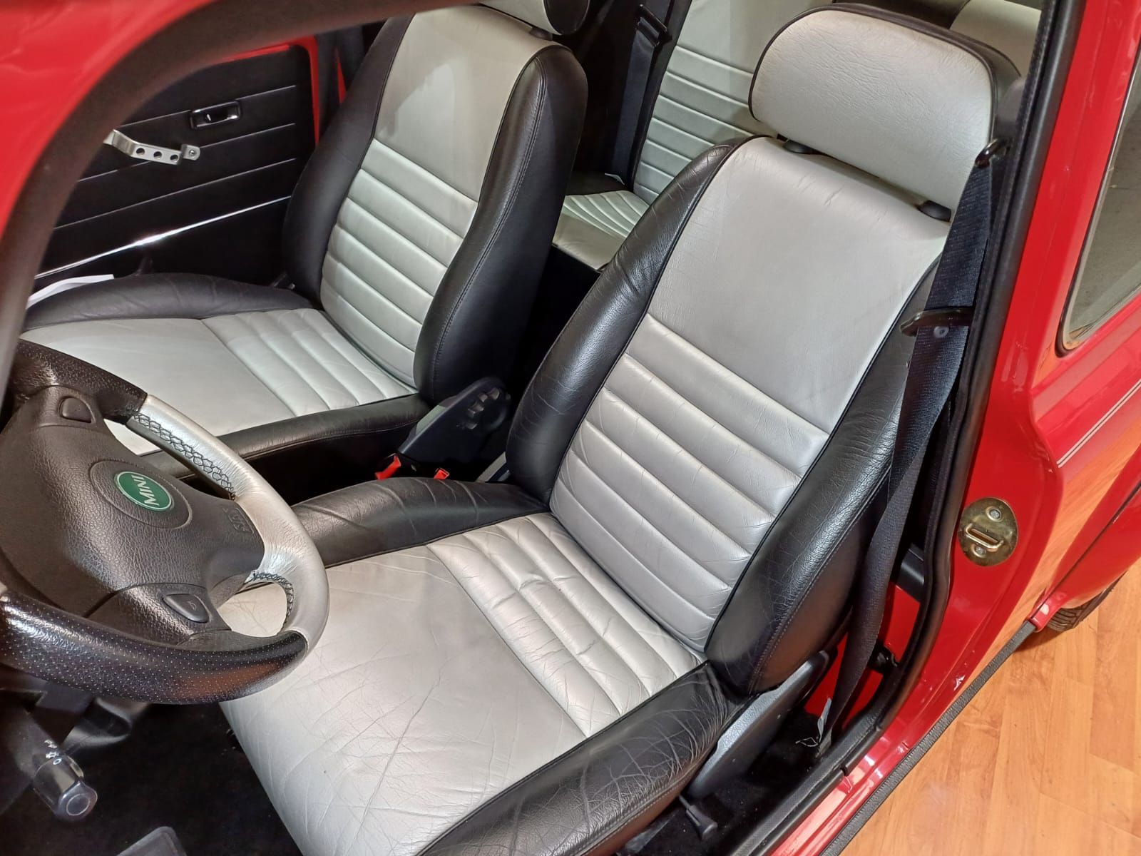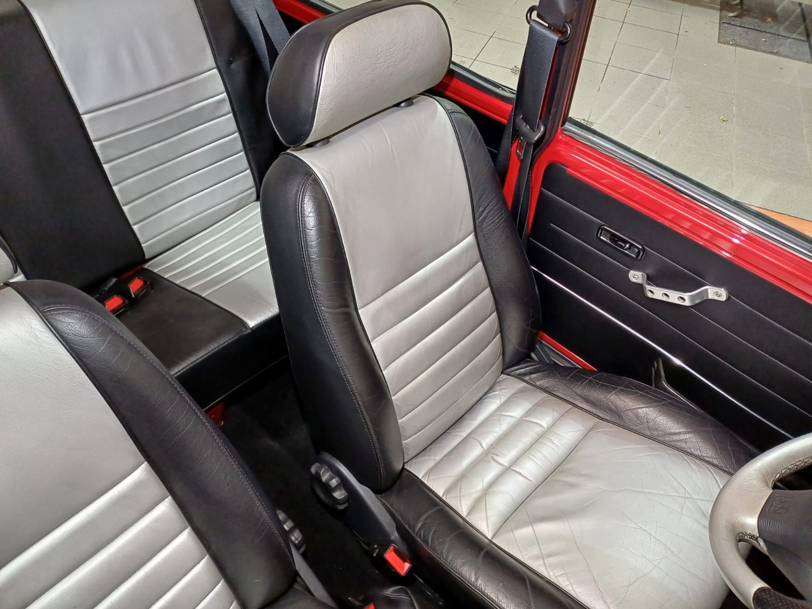 Finition exclusive de couleur rouge avec toit argent ainsi que son intérieur cuir noir et argent en parfait état