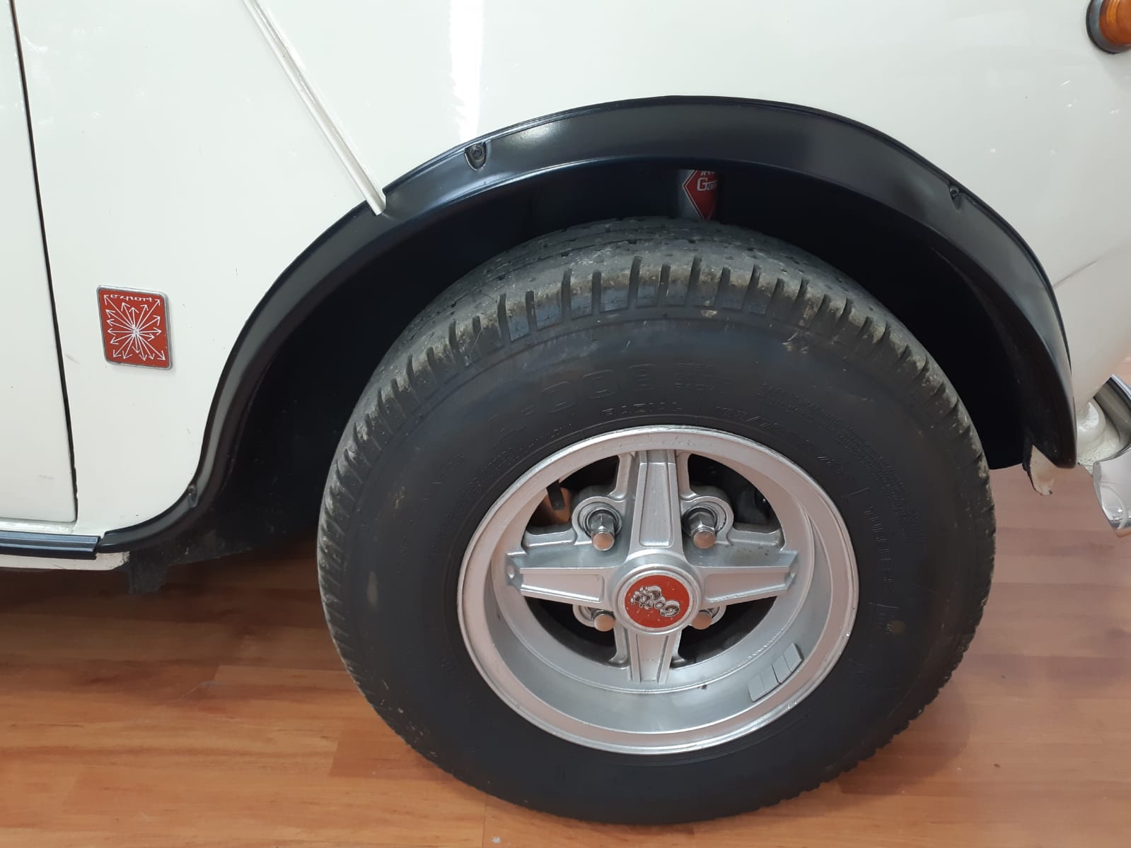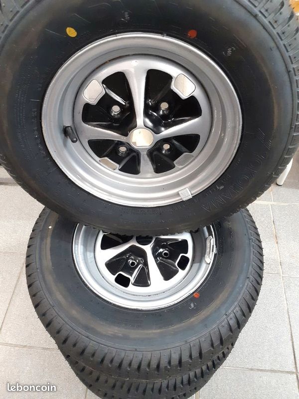 5 jantes origine Innocenti refaite à neuf avec pneu neuf Yokohama disponible en supplément.