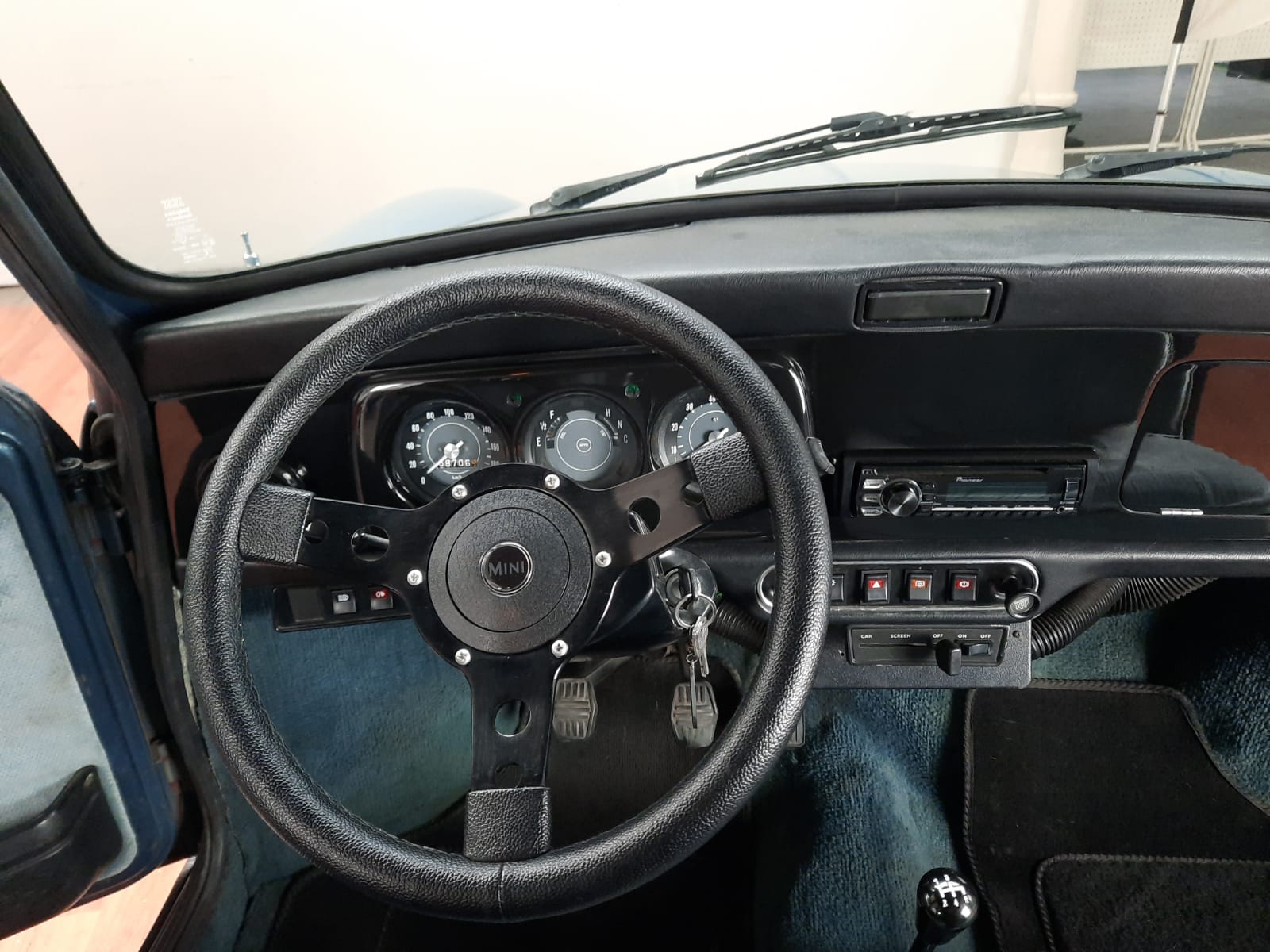 Moquette bleu avec surtapis noir MINI
