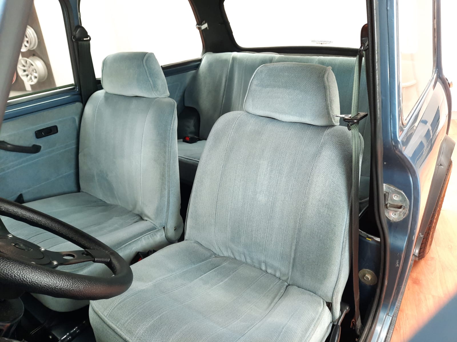 Sièges d'origine en tissu velours bleu ciel,