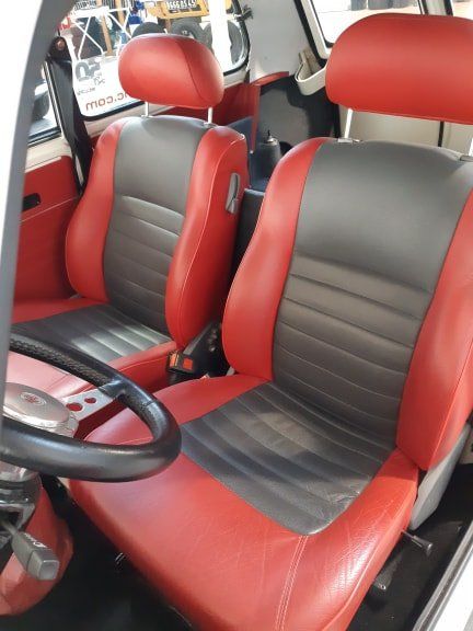 Réalisation d'un intérieur entièrement en cuir bi-color noir et rouge sur mesure