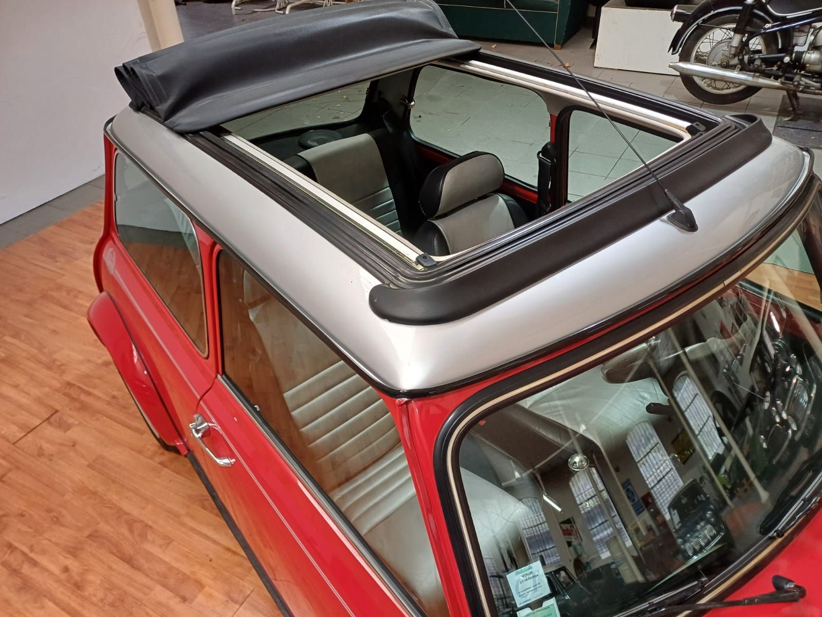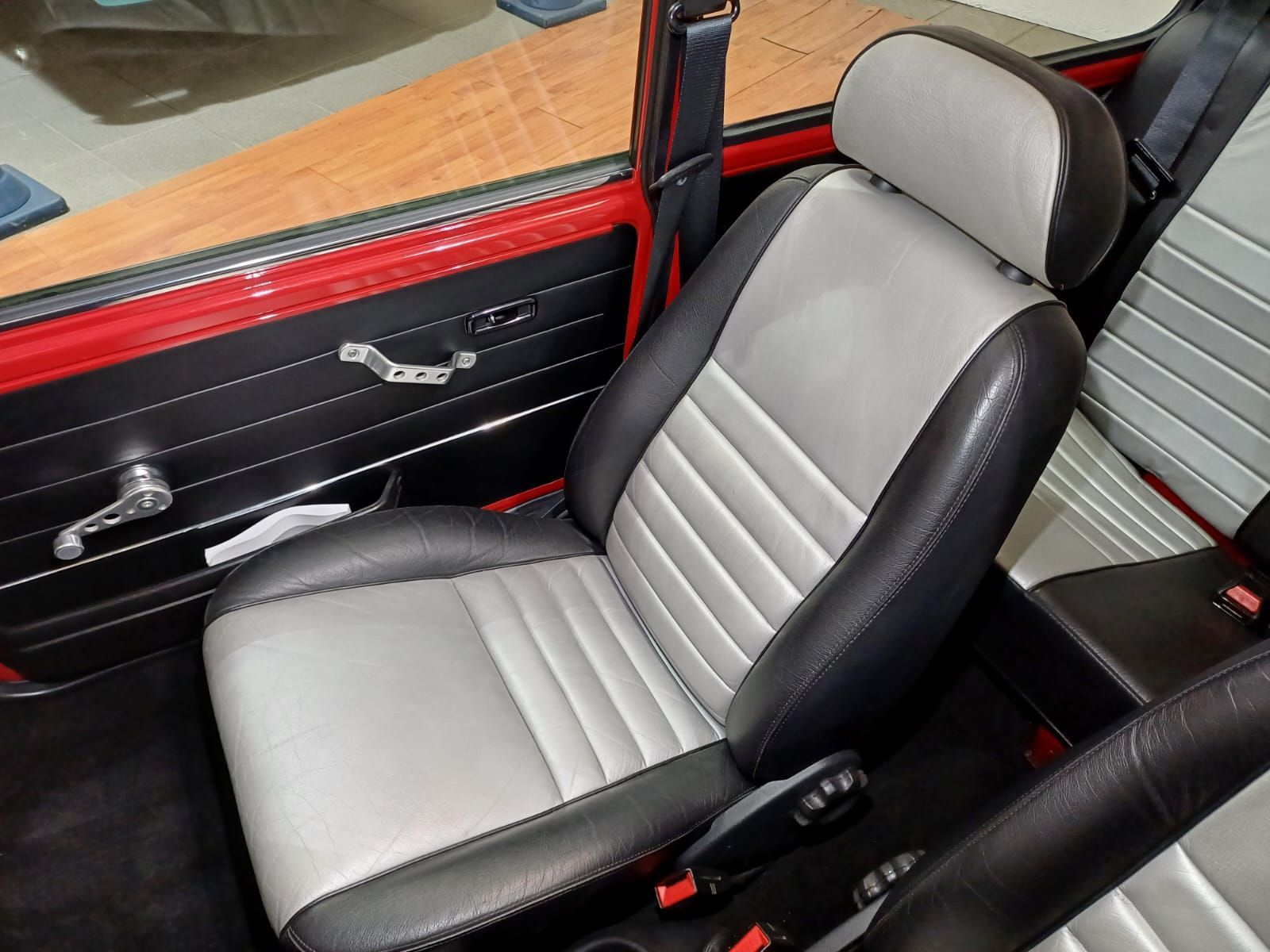 Finition exclusive de couleur rouge avec toit argent ainsi que son intérieur cuir noir et argent en parfait état