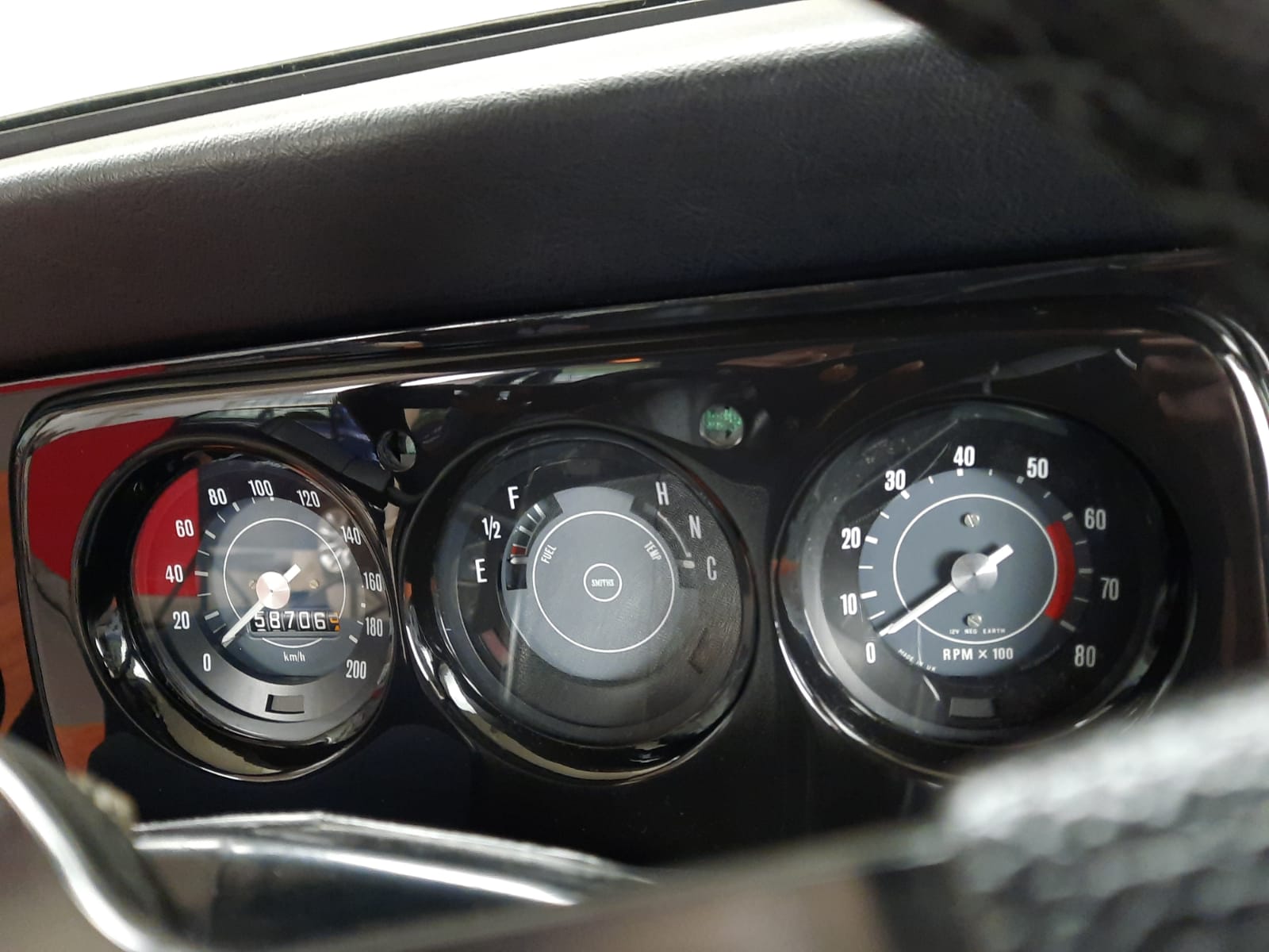 Tableau de bord noir laqué trois compteurs plus boite à gants,